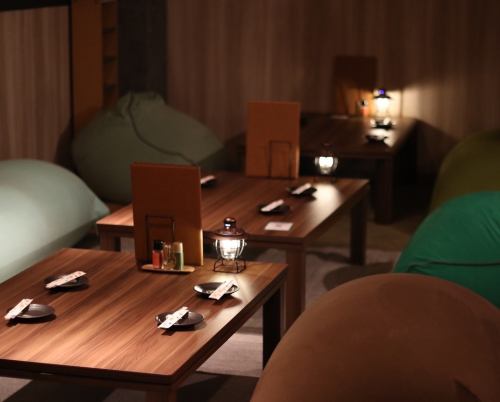 大人気のYogibo席です。一度座れば立ち上がれないという方続出!!現在は冬季期間で【こたつ席×Yogibo席】に!さらにテーブル同士を付けられるので、みんなで仲良くYogiboに!なども可能です☆最大1席5名様まで可能です。
